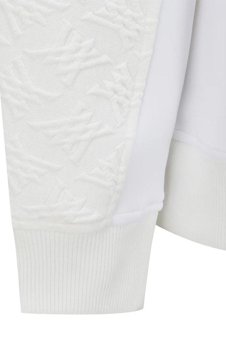 立体感のあるロゴエンボスパターンに目を惹くクルーネックスウェット。柔らかな肌触りの素材を使用し、快適な着心地を実現しました。サイドや袖口に異素材を組み合わせることで、シンプルながらも奥行きのあるデザインに仕上がっています。リブ仕様の裾や袖口がフィット感を高め、シルエットをすっきりと見せてくれるのも魅力。カジュアルなデイリースタイルからスポーティーなゴルフシーンまで、幅広く活躍する汎用性の高い一枚です。