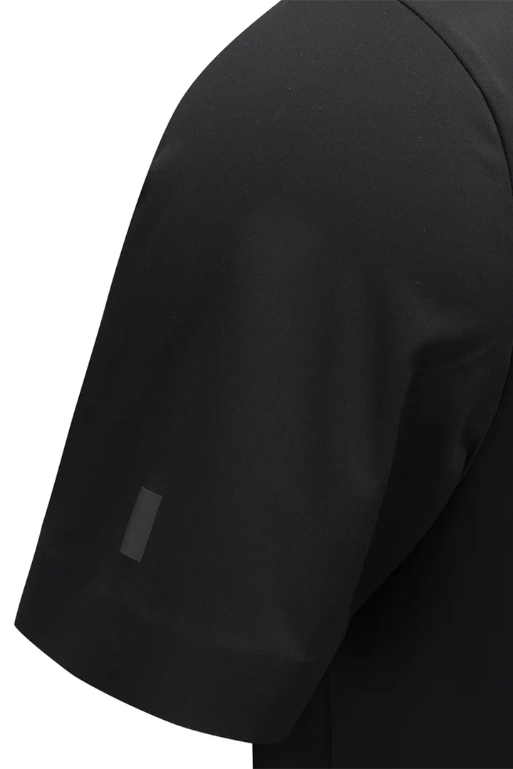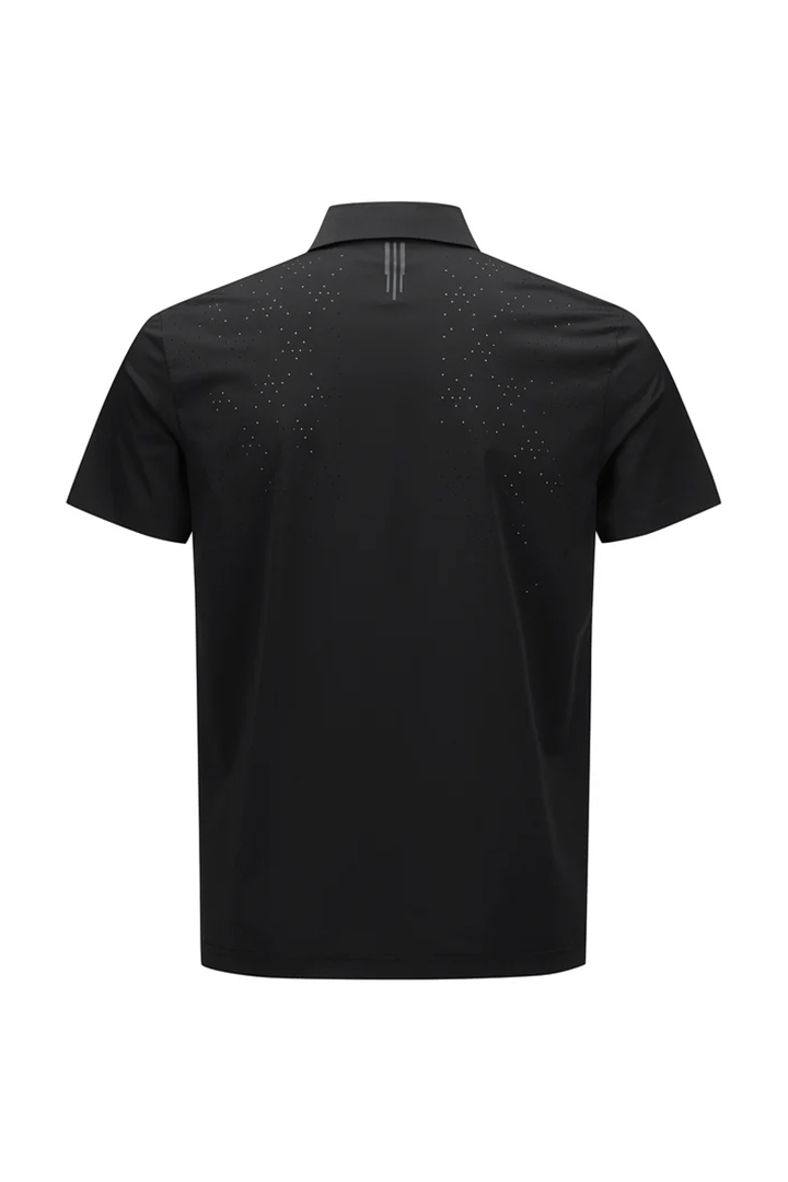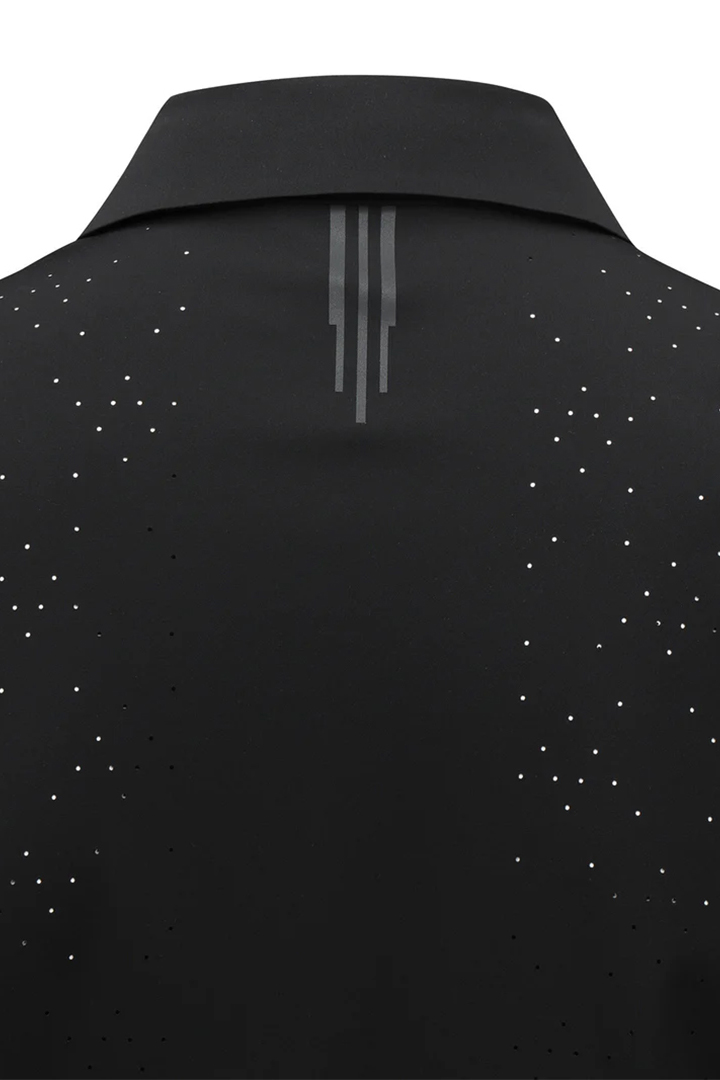 高機能「ブラックフィニッシュ」ラインのパフォーマンスデザインを取り入れたショートスリーブポロシャツ。背面にはロゴ形状のパンチング加工が施され、通気性に優れています。3Mのリフレクタープリントをアクセントに使用し、スポーティなムードを演出するアイテムです。