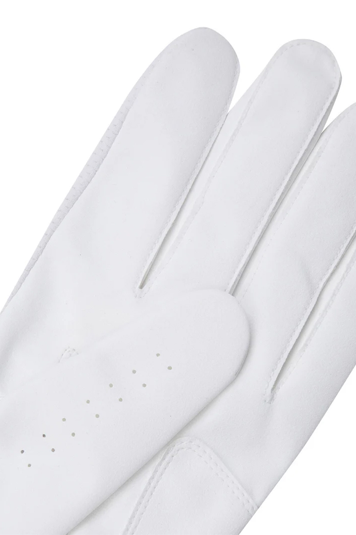 通気性の良いメッシュ素材を使用したメンズゴルフグローブ。夏でも快適に着用できるデザインで、タブ部分にはウレタンワッペンを使用。手の甲にはブランドロゴを配置し、アクセントを加えました。VP7素材を採用することで、滑りにくさを最小限に抑えています。