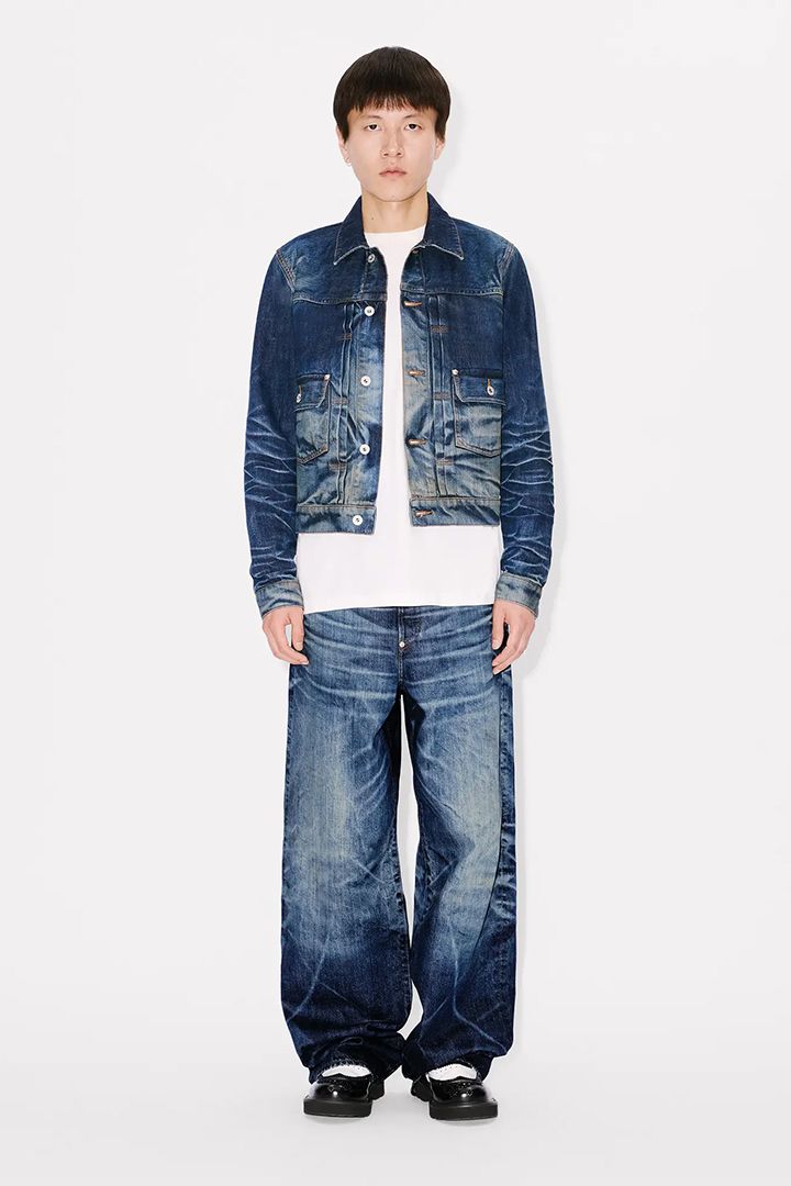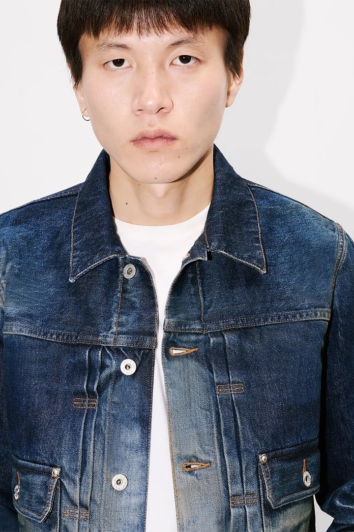 KENZO ケンゾー スリム プリーツ トラッカー ジャケット ジャパニーズ デニム{-BEA} [FF65DV3126I7-DY]