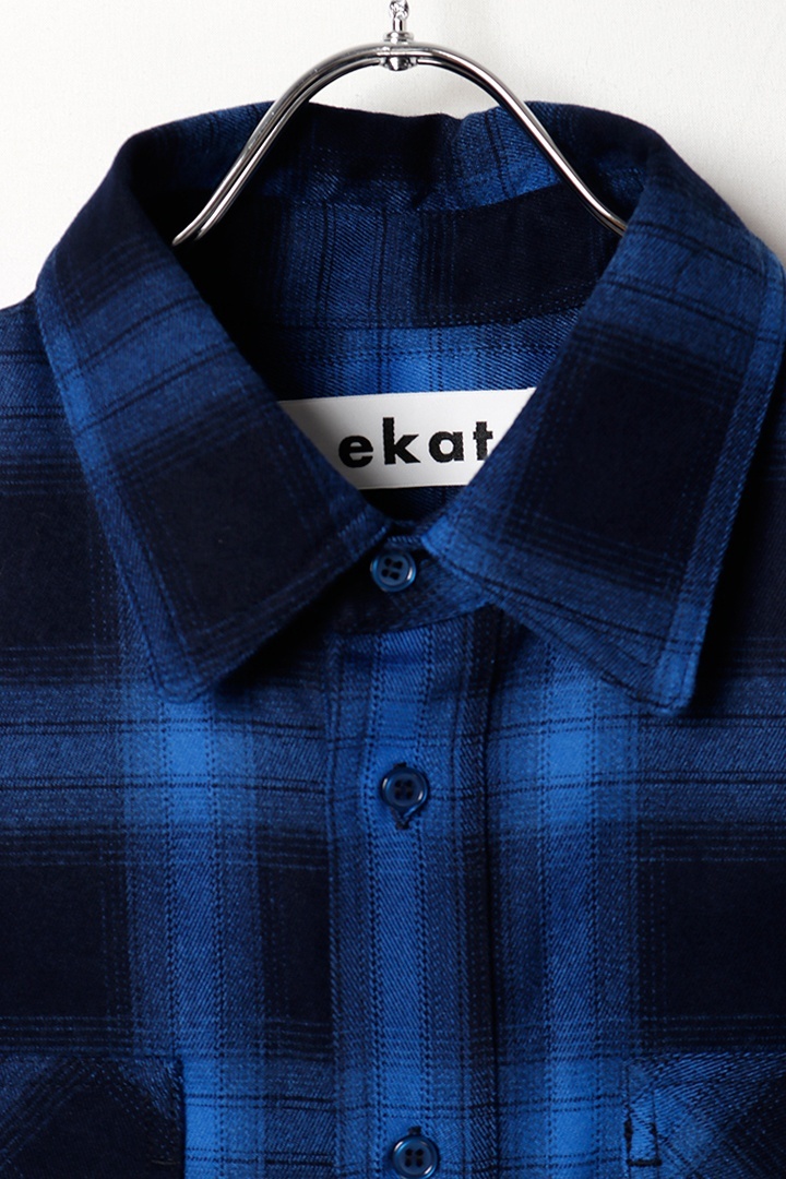 {SOLD}ekat エカット(UNISEX) PATCH POCKET CHECK SHIRT{-BEA} [EFP2510261-BLU-2]