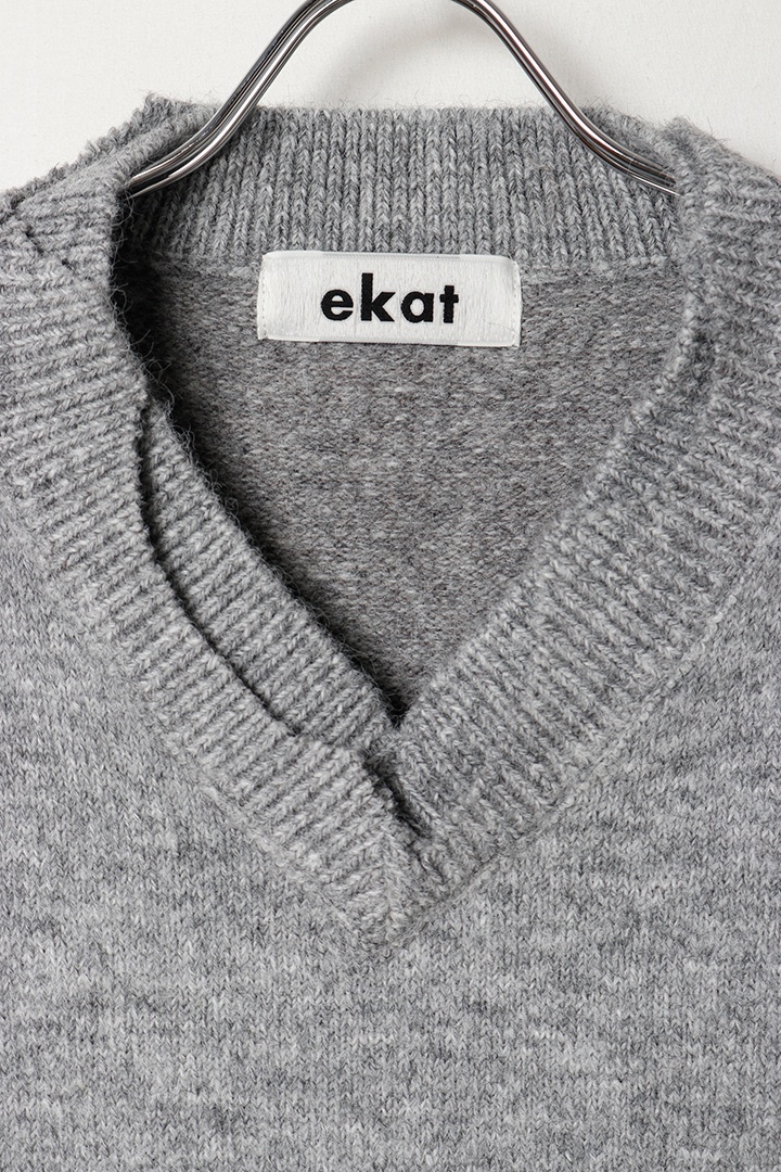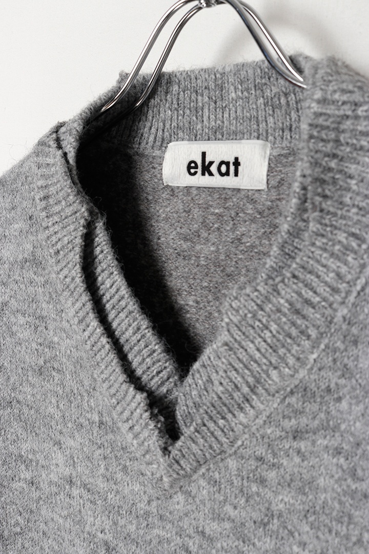 ekat エカット(UNISEX) DAMAGE V NECK KNIT{-BEA}