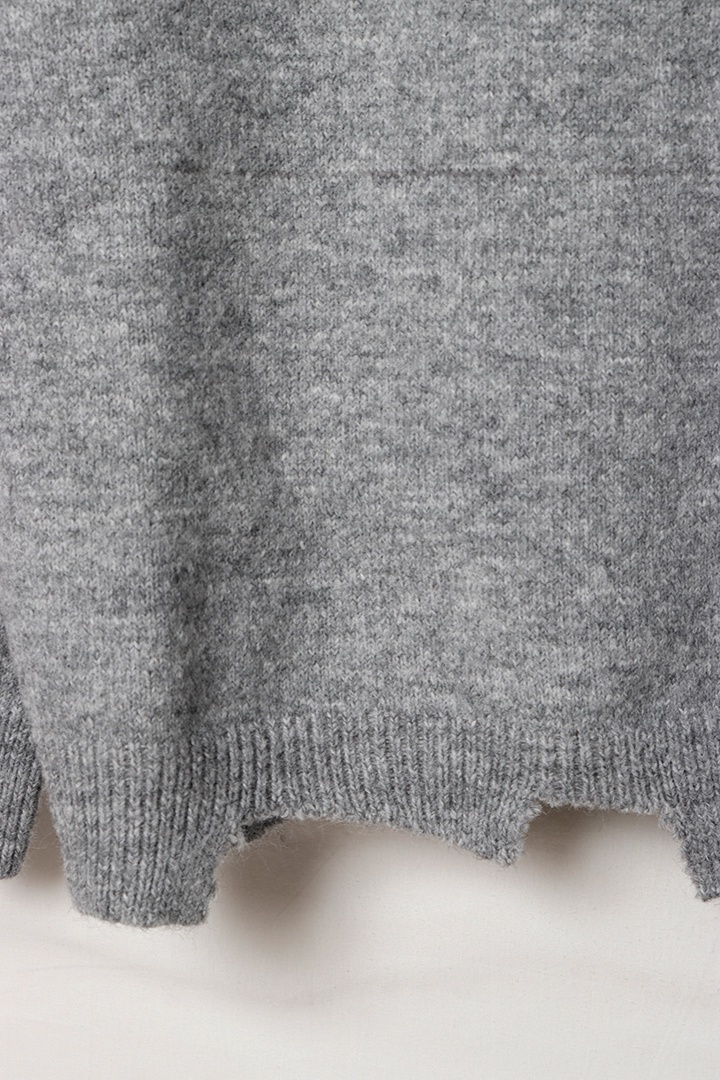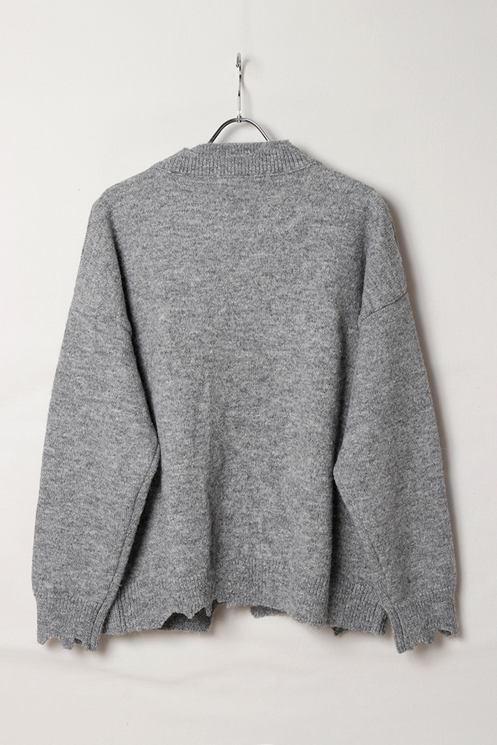 ekat エカット(UNISEX) DAMAGE V NECK KNIT{-BEA} [EMA2511265-GRY-2]