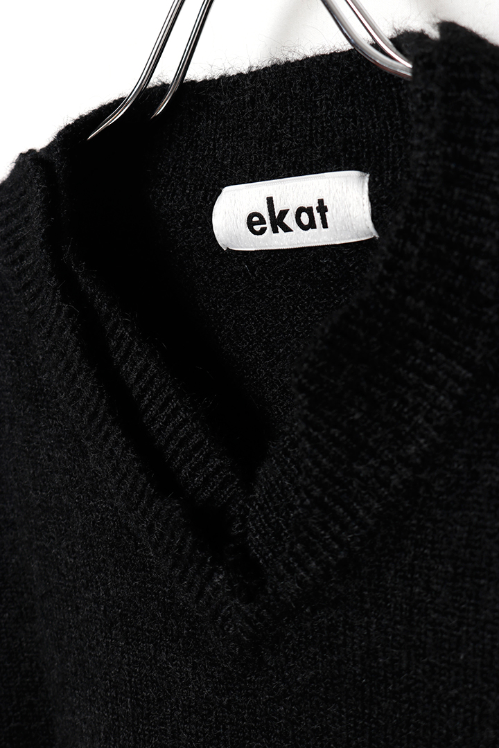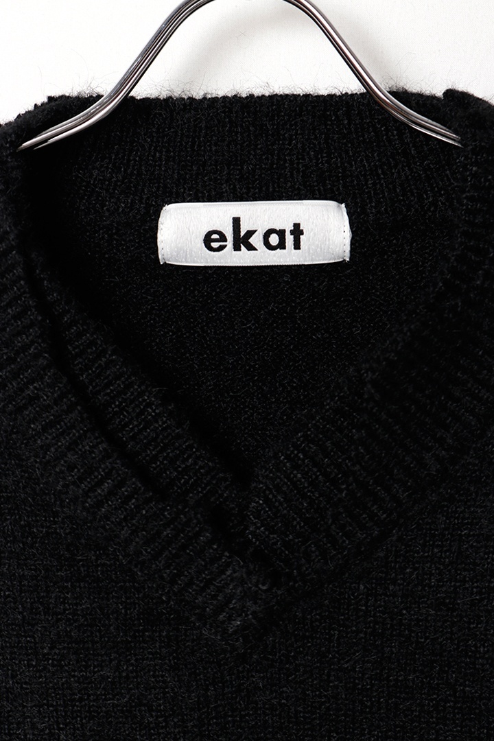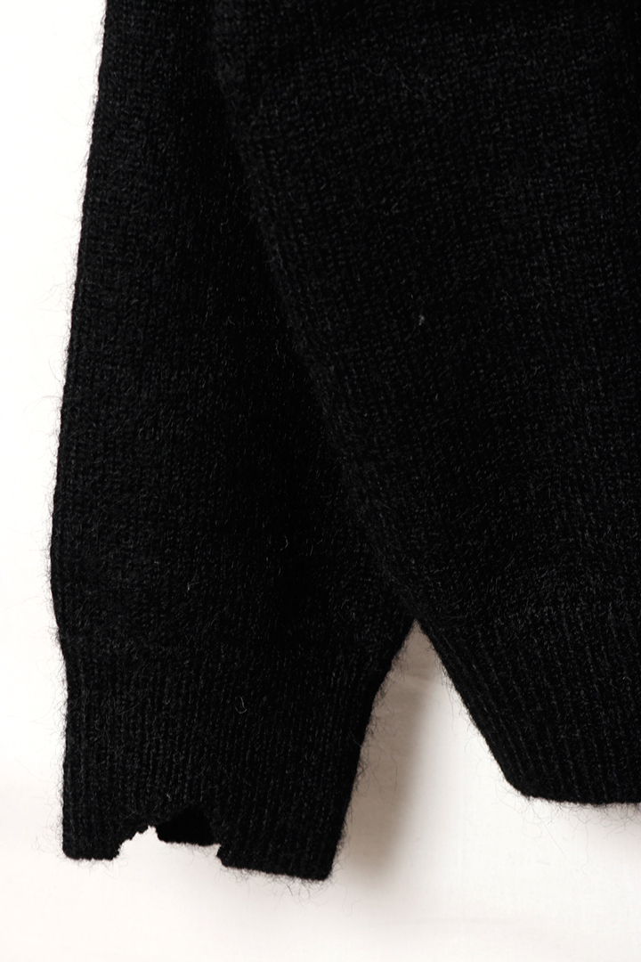 ekat エカット(UNISEX) DAMAGE V NECK KNIT{-BEA} [EMA2511265-BLK-2]