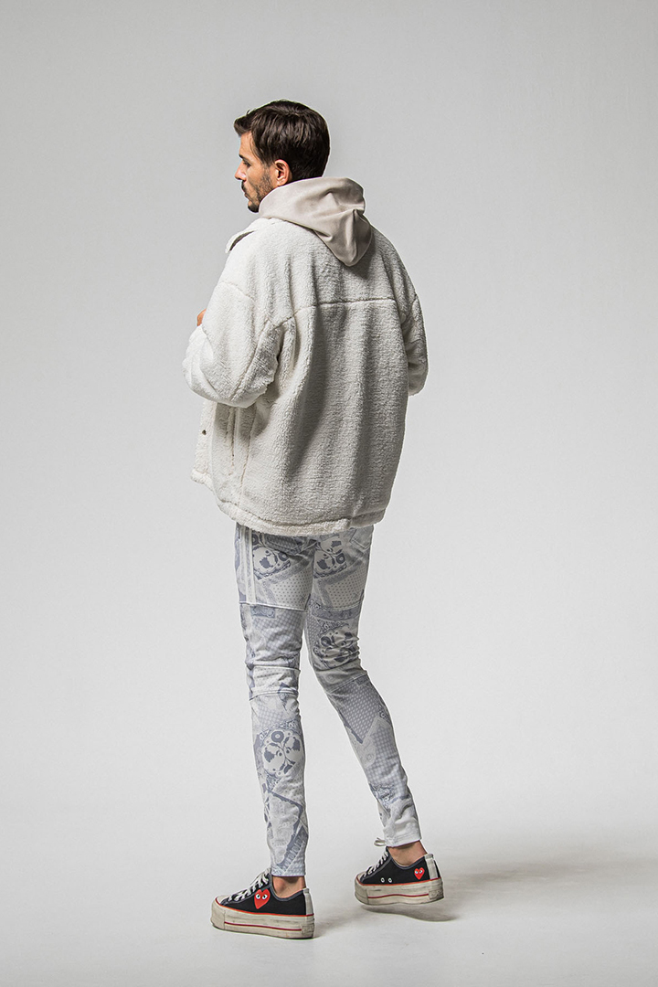 オリジナルスナップボタンでGジャンのような雰囲気に ドロップショルダーでトレンド感のあるオーバーサイズ シルエット