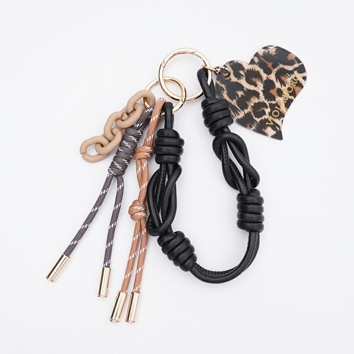 オリジナルのロゴ入りアクリルパーツのついたバッグチャーム。