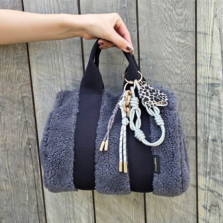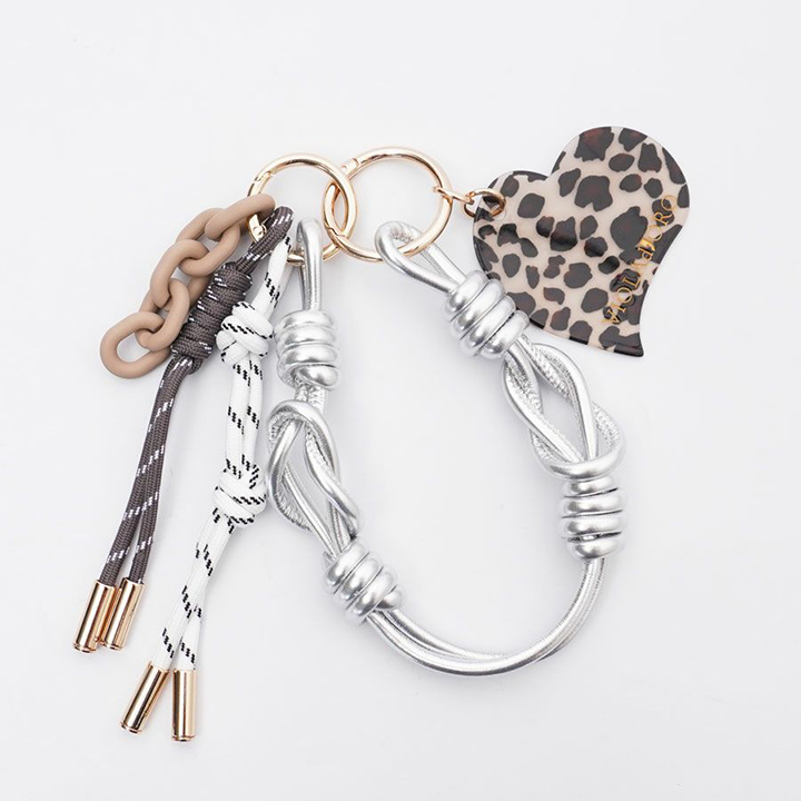 オリジナルのロゴ入りアクリルパーツのついたバッグチャーム。