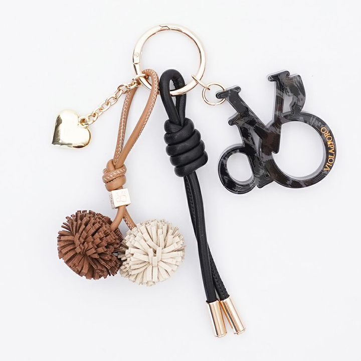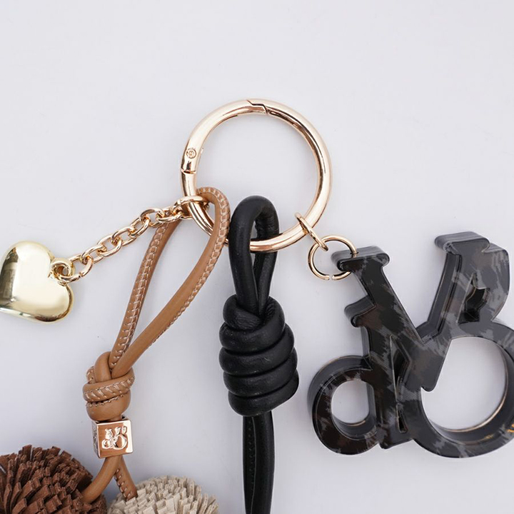 お持ちのバッグを華やかにしてくれる、オリジナルのロゴアクリルパーツのついたバッグチャーム。