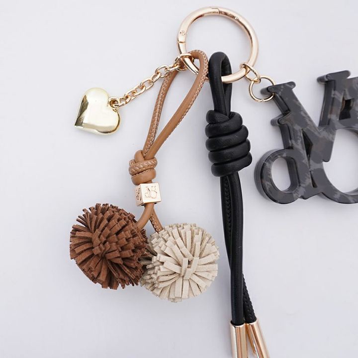 レザーコードとポンポン、ハートのモチーフとカナビラがセットになっています。