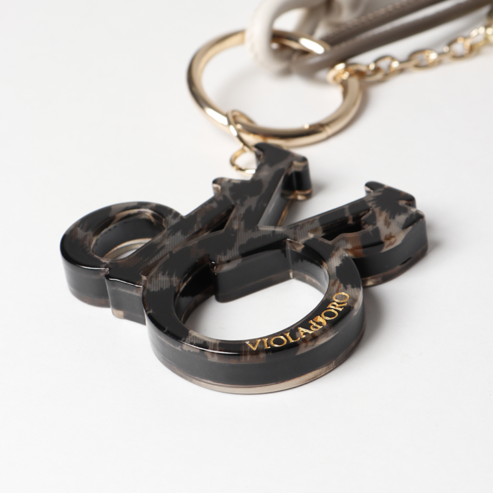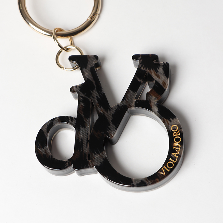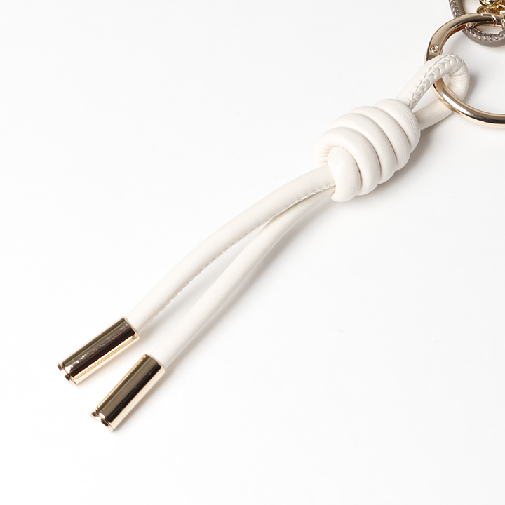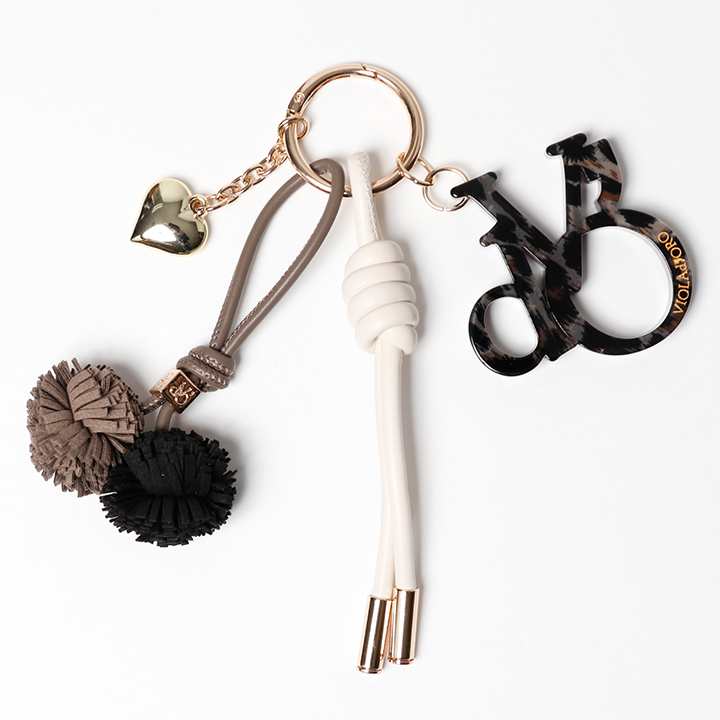 お持ちのバッグを華やかにしてくれる、オリジナルのロゴアクリルパーツのついたバッグチャーム。