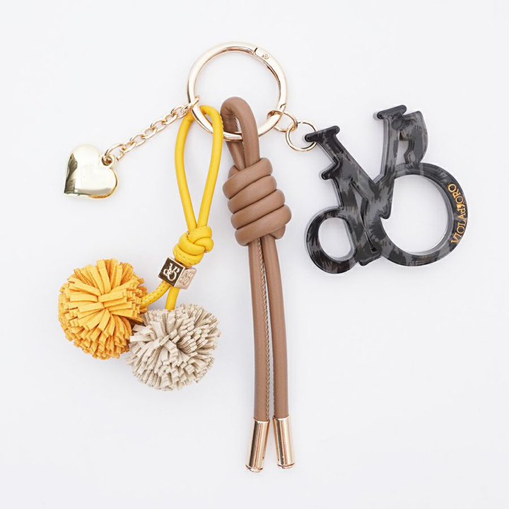 お持ちのバッグを華やかにしてくれる、オリジナルのロゴアクリルパーツのついたバッグチャーム。