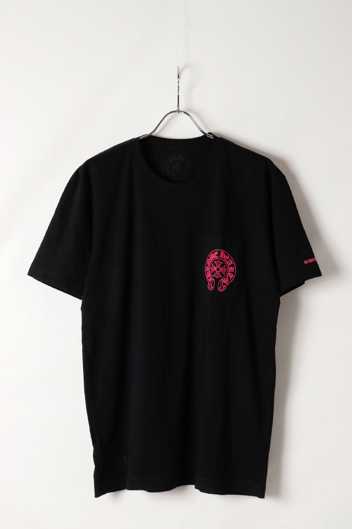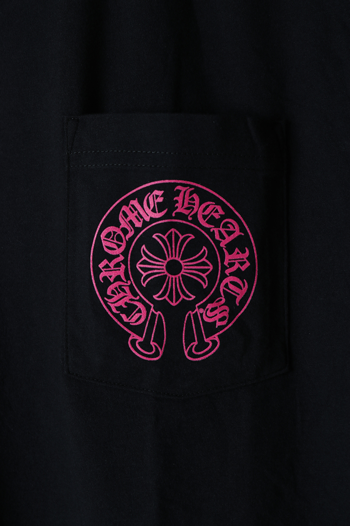 {SOLD}★新品 インボイス付 CHROME HEARTS クロムハーツ ピンクホースシュー + CHプラス ショートスリーブ ポケット Tシャツ ブラック Pink Horseshoe + CH Plus Pocket Short-Sleeve T-Shirt - Black{408129111******01G-BEA}