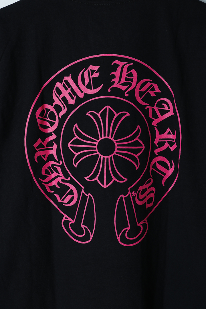 {SOLD}★新品 インボイス付 CHROME HEARTS クロムハーツ ピンクホースシュー + CHプラス ショートスリーブ ポケット Tシャツ ブラック Pink Horseshoe + CH Plus Pocket Short-Sleeve T-Shirt - Black{408129111******01G-BEA} [CH202511-03-BLK-L]