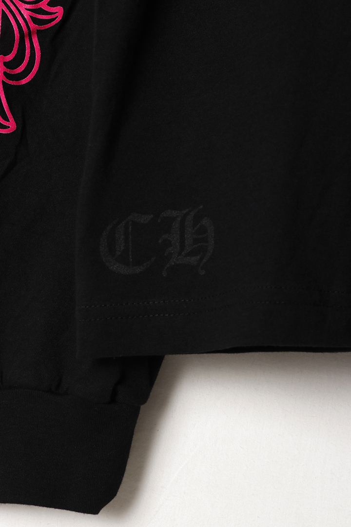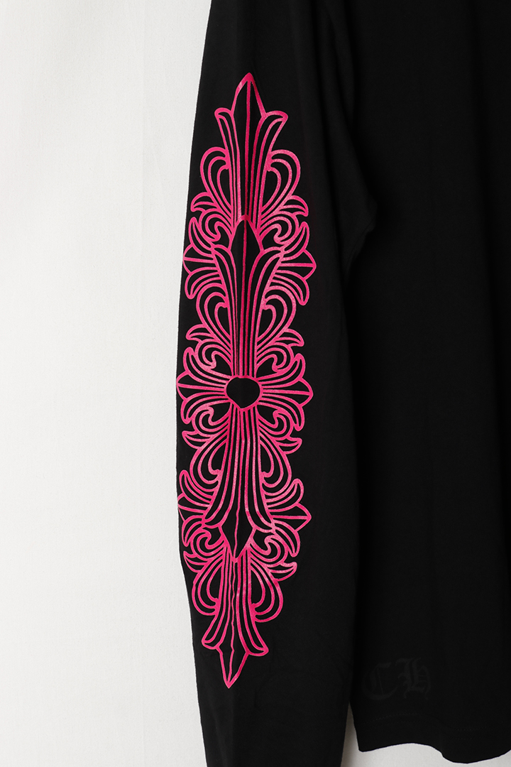 {SOLD}★新品 CHROME HEARTS クロムハーツ ピンクホースシュー フローラルロングスリーブTシャツ ブラック Pink Horseshoe Floral Long-Sleeve T-Shirt - Black{408129112******01G-BEA}