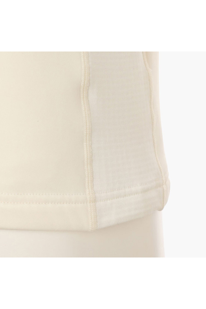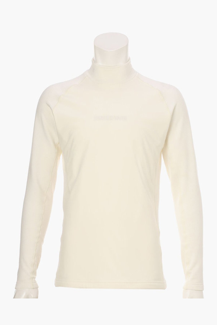 レイヤードのしやすい、タイトフィットな長袖のハイネックシャツです。着用感を踏まえて、2つの素材を切り替えています。