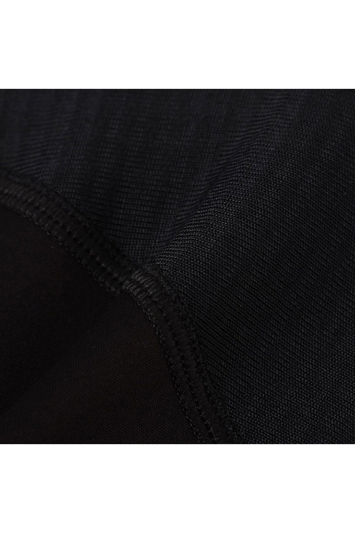 ・襟はタイトフィットなハイネックにし、肩の可動域が広いラグランスリーブ切り替えを採用しています。