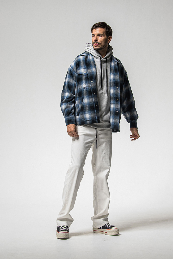 50年代の古き良き時代のオンブレチェックと温かみのあるフランネルが クラシカルな中に今っぽさを感じさせるシルエット