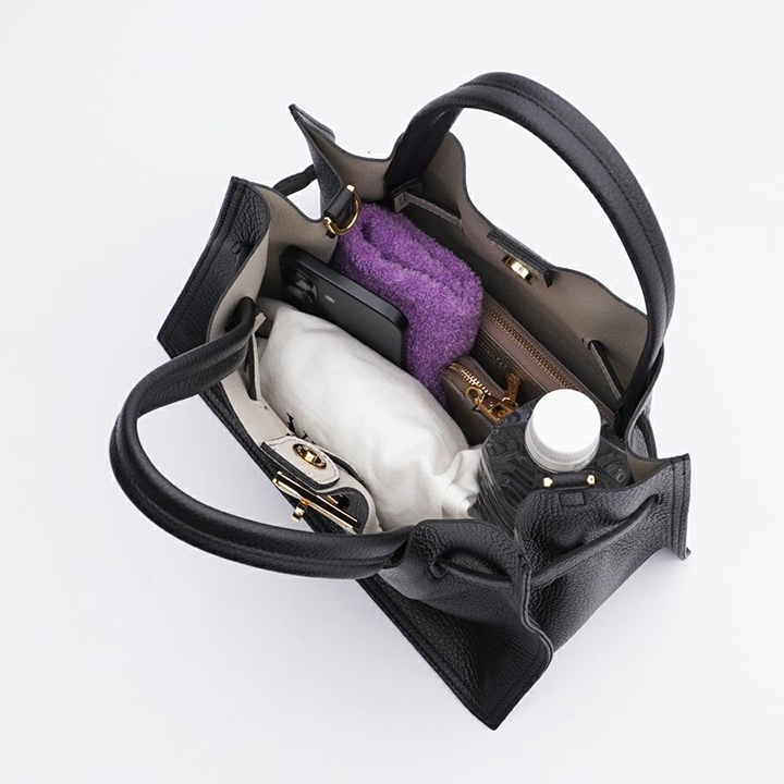 しなやかで傷の付きにくいシボの型押しレザーは上品で、使い勝手も良いので幅広いシーンでお使いいただけます。