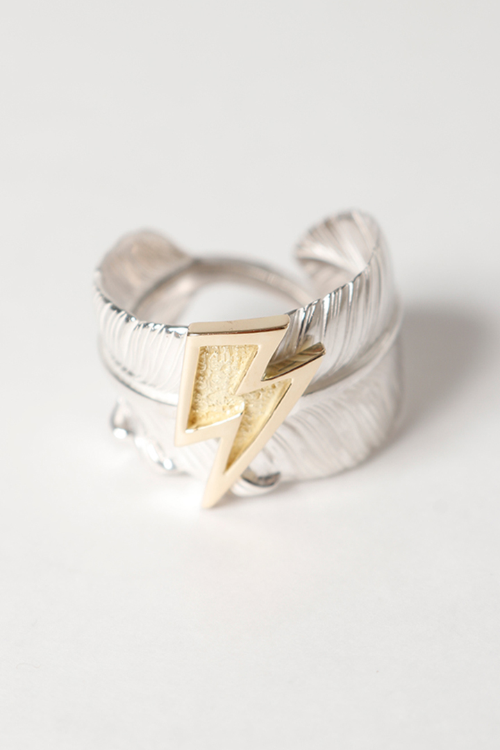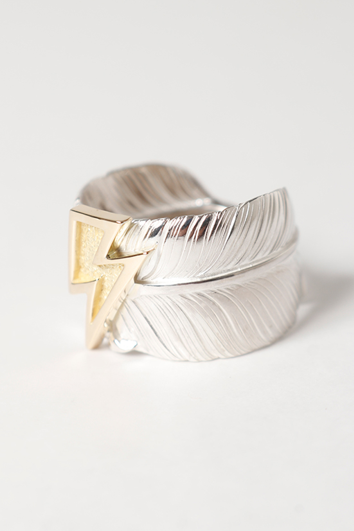 {SOLD}Taro Washimi タロウ ワシミ 鷲見太郎 L old feather ring 02/K18 big thunder{-BEA} [WT-202511_03-17]