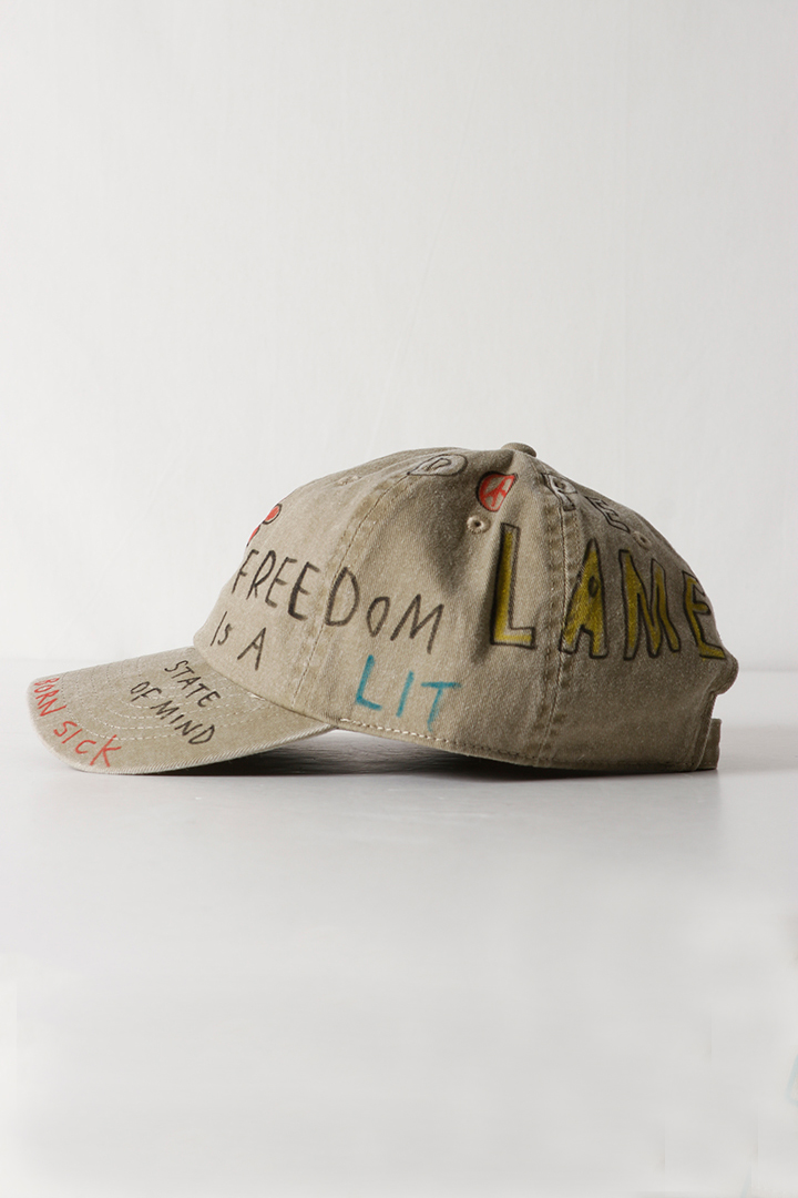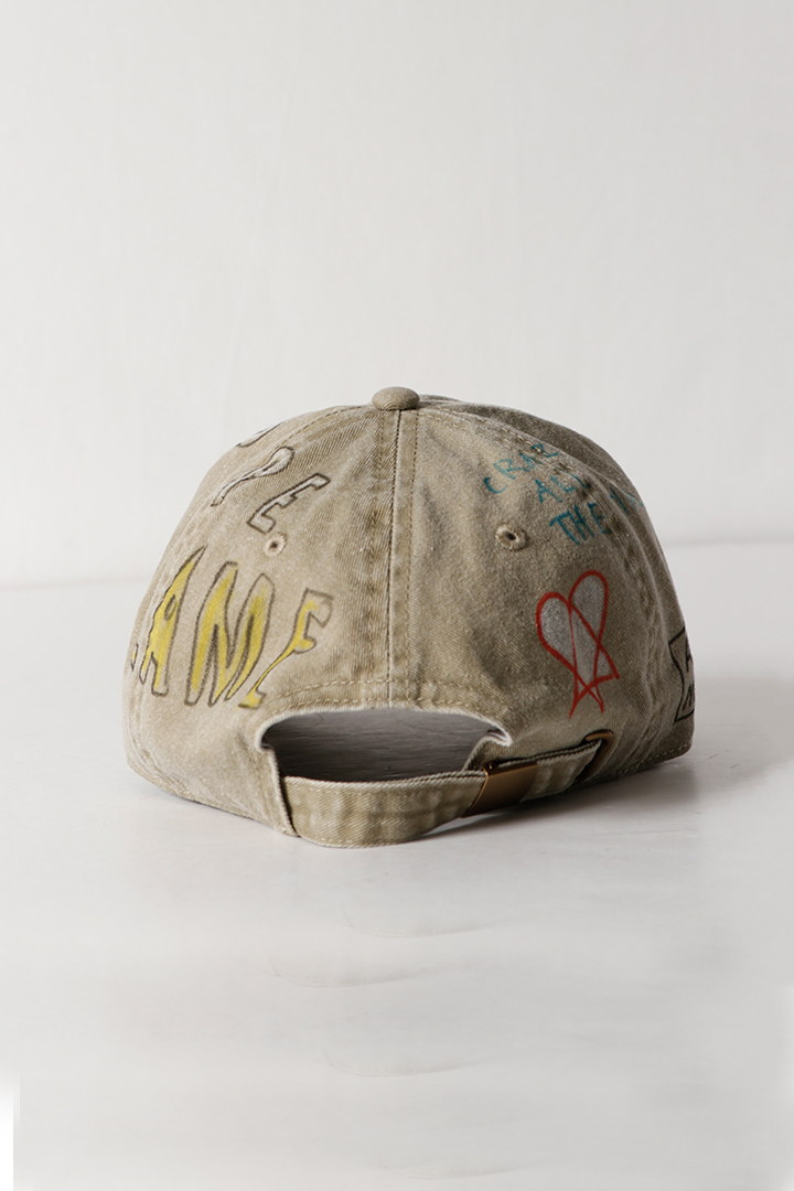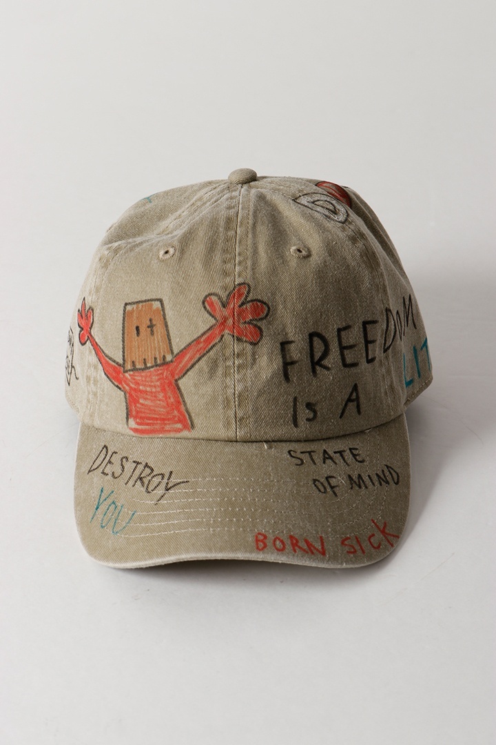 アーティスト、乾シンイチロウ(Shinichiro Inui)によりハンドペイントが施されたキャップ。