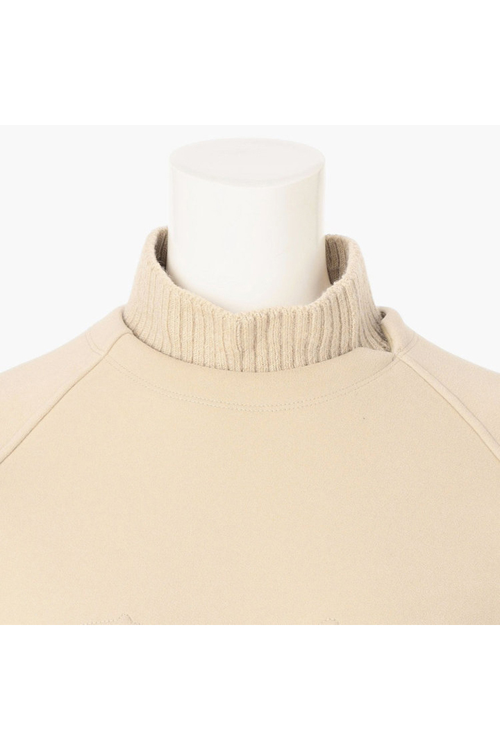 ・袖・裾リブや首元のレイヤードデザイン部分にボディと質感の異なる素材を採用することで、ワントーンの配色でありながもメリハリの効いたルックスに。
