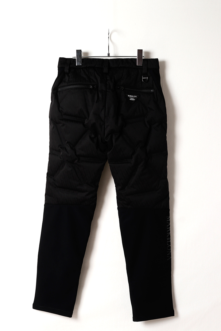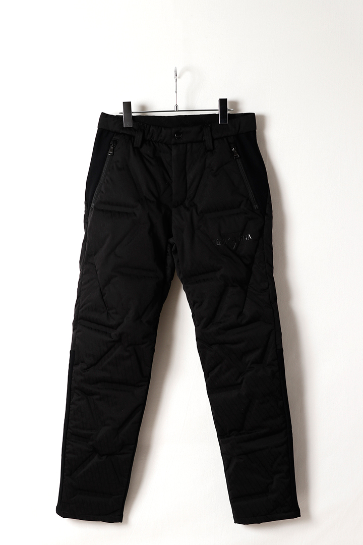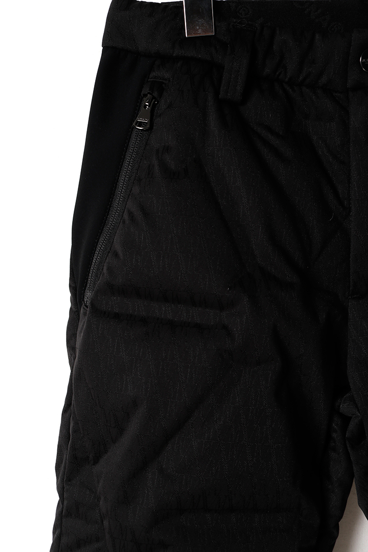 シームレス圧着ストレッチダウンとボンディング素材コンビネーションパンツ。CODEのモチーフであるトライアングルパターンのダウンパンツ。