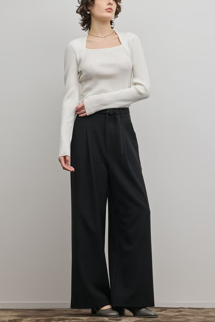 レイヤード風のテクニックで。シンプルながらも個性を効かせたニットトップス。