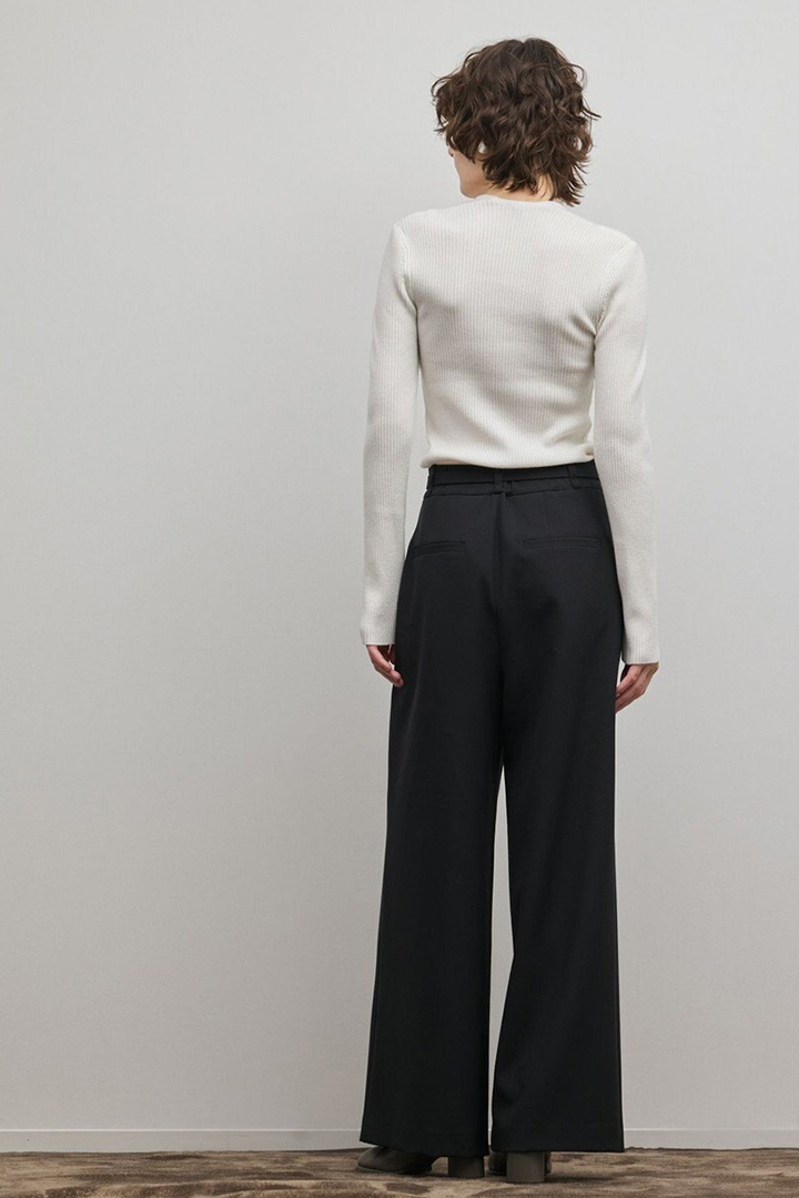 すっきりとしたリブ編みに程よくボディにフィットする女性らしいシルエット。