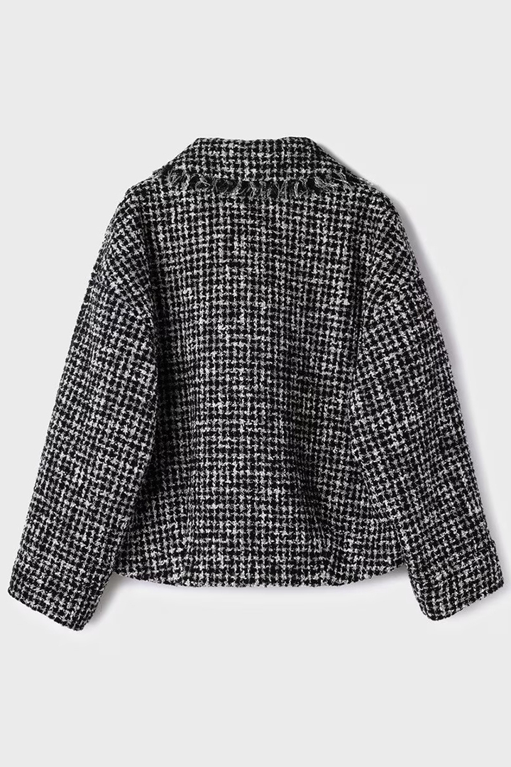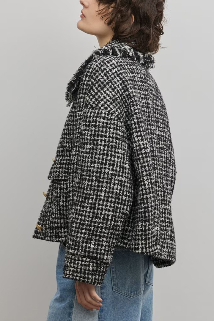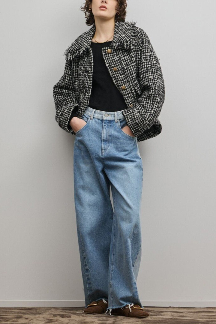 上質なツイード地にゴールドボタンを採用する事でラフに傾き過ぎず、綺麗めスタイルにも寄り添う一枚に仕上げました。
