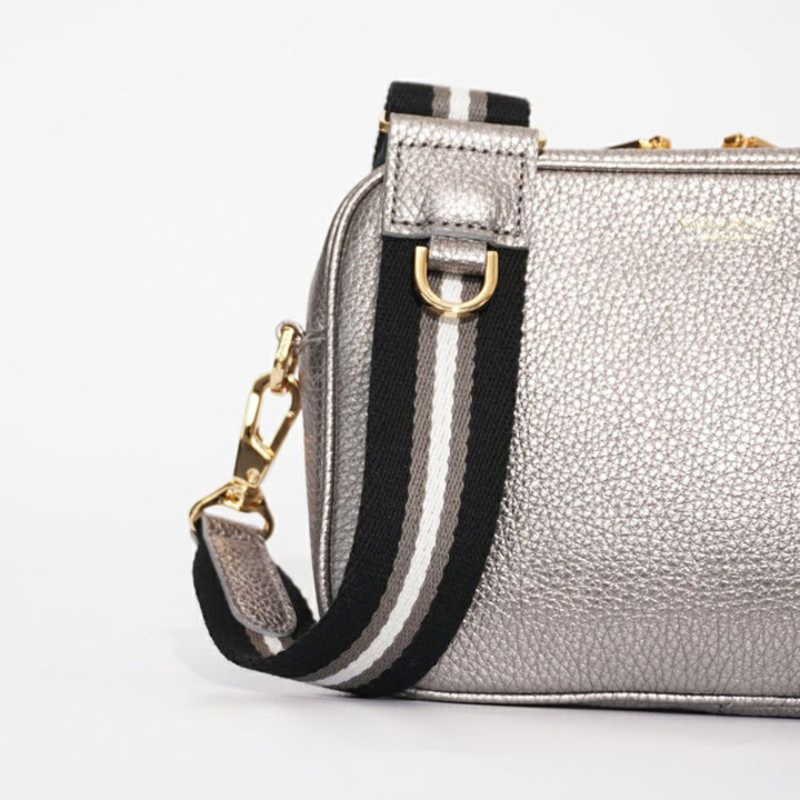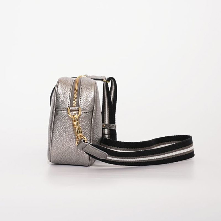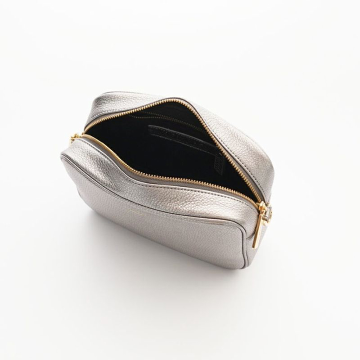 イタリアMASTROTTO社のメタリックレザーを使用したカメラバッグ。