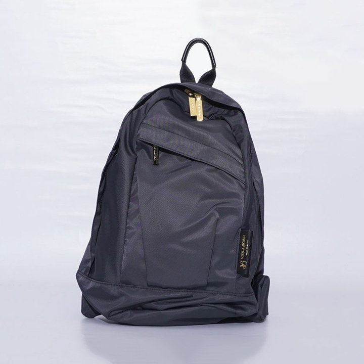 弱撥水の柔らかく光沢感のあるナイロン素材のバックパック。