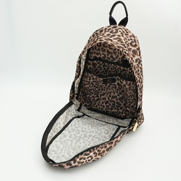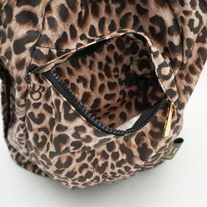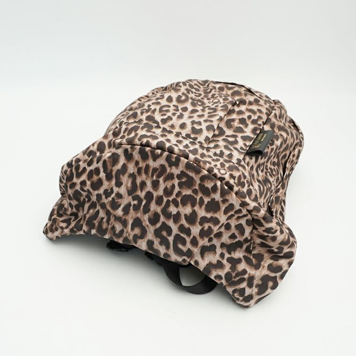 オリジナルのレオパードナイロンプリント素材のバックパック。