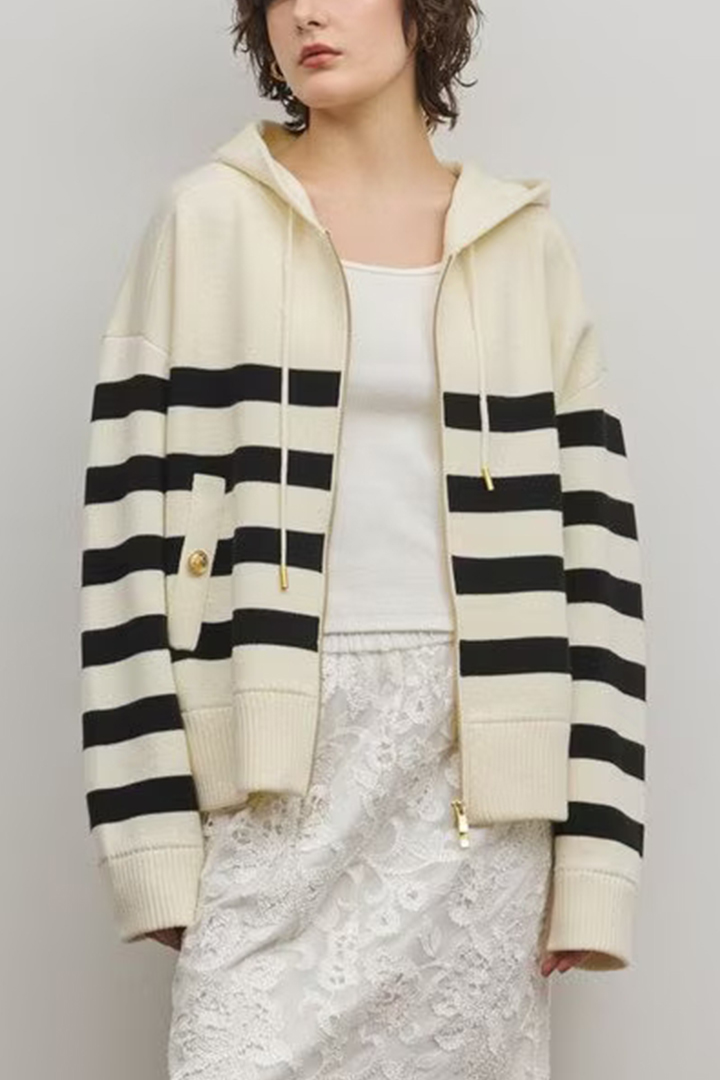 ウール混素材でお作りした大人顔のニットパーカー。