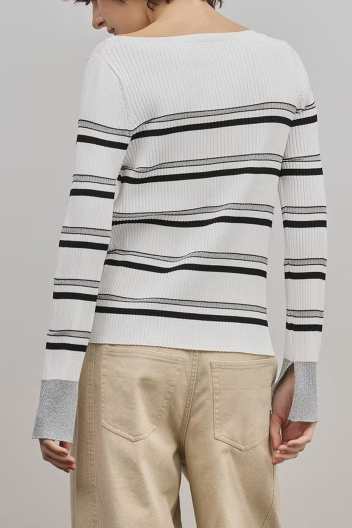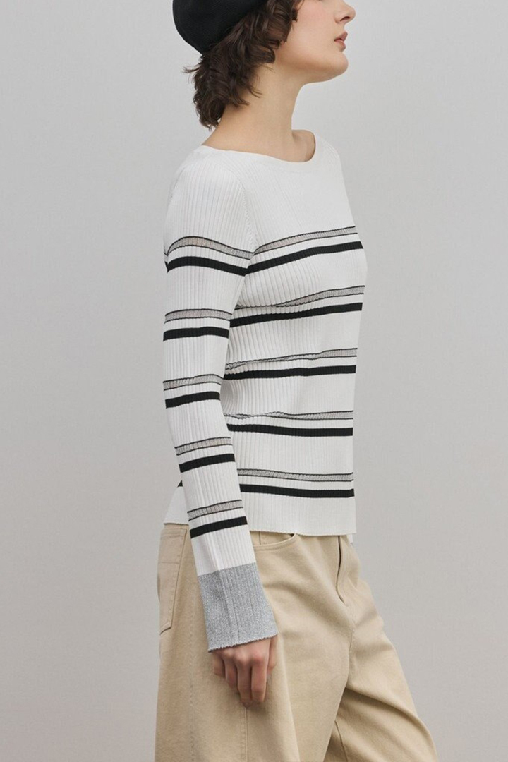 ボーダーにシアー感のあるラメ素材を使用して、また一味違った洗練感のあるデザインに仕上げました。