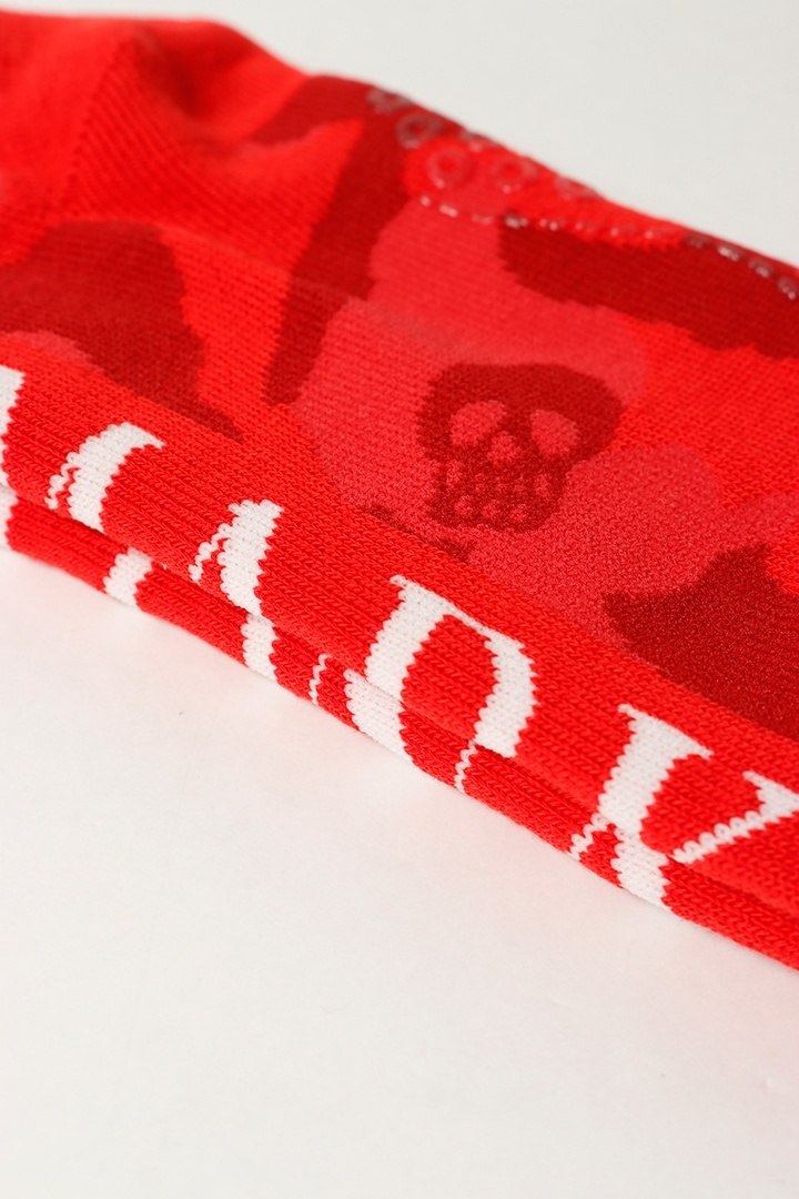 カモフラージュ柄とブランドロゴをジャカードをミックスしたデザインソックス。