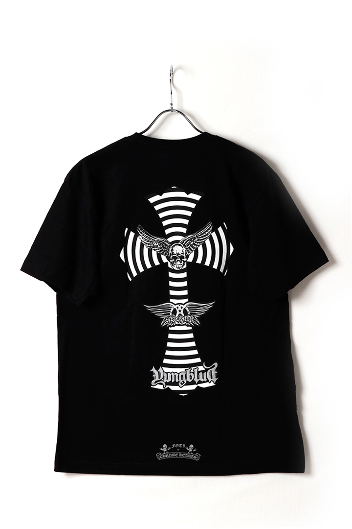 ★海外買付 新品 インボイス付 CHROME HEARTS クロムハーツ FOTI(フォティ)×エアロ スミス×ヤングブラッド ショートスリーブTシャツ{408219197BLK***01T-BFS} [CH202601-01-BLK]