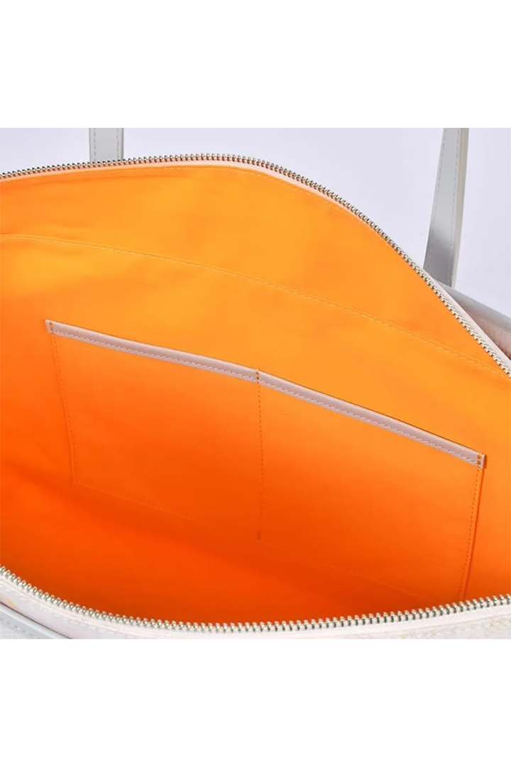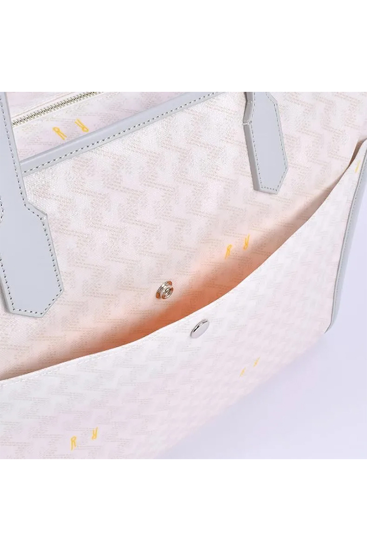 コバ部分には、贅沢に本革を使用したヘリ巻きを採用。バッグ全体を引き締めるアクセントとなるだけでなく、型崩れしにくいという実用面でも優れたディテールです。