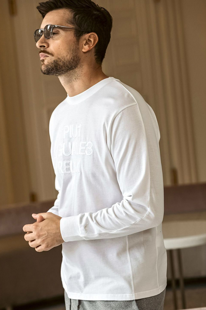 1piu1uguale3 RELAX ウノピゥウノウグァーレトレ リラックス ツイルロゴアップリケロングTシャツ{-BFS} [UST-26067-WHT]