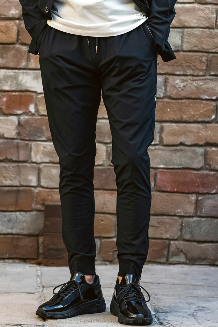 1piu1uguale3 RELAX ウノピゥウノウグァーレトレ リラックス 接触冷感グレンチェックナイロンジョガーパンツ{-BFS} [USB-26077-BLK]