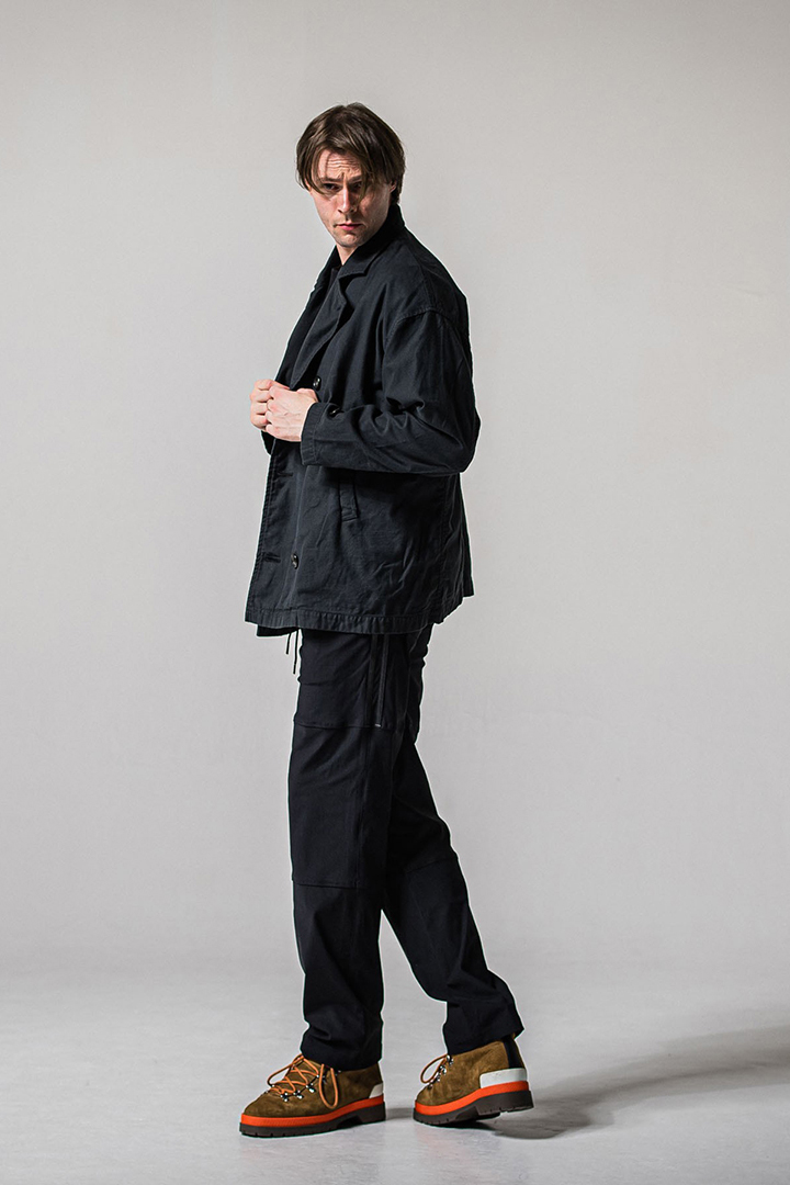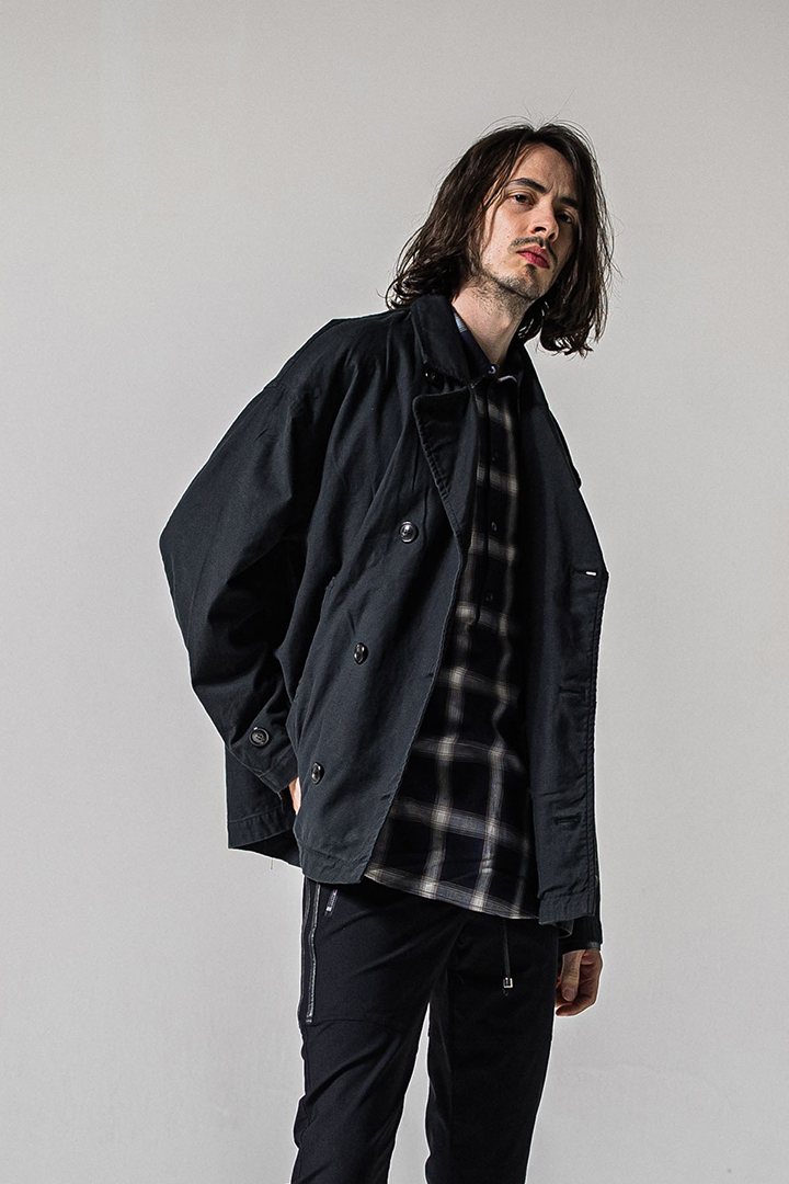 ミリタリー素材を使用したオーバーサイズのピーコートジャケット