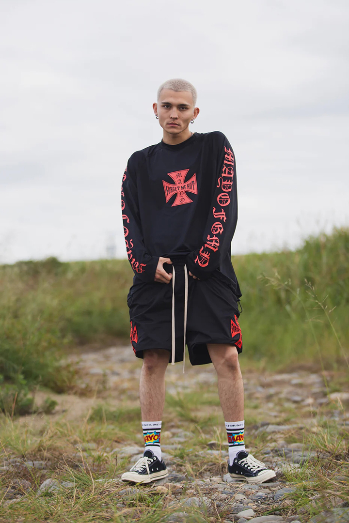 アイアンクロス刺繍の2WAYショーツとセットアップで着用可能です。
