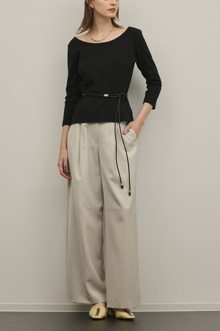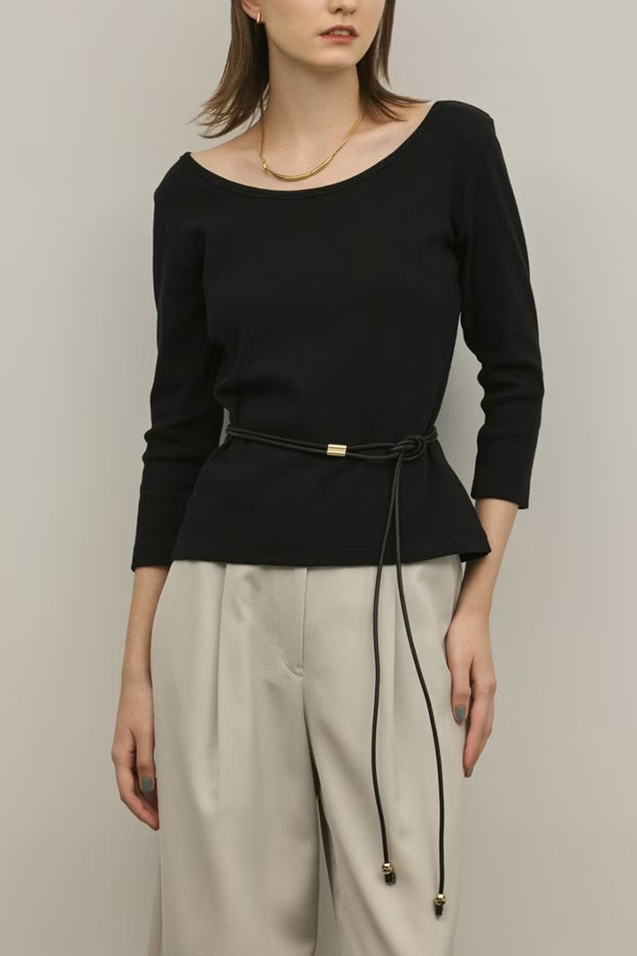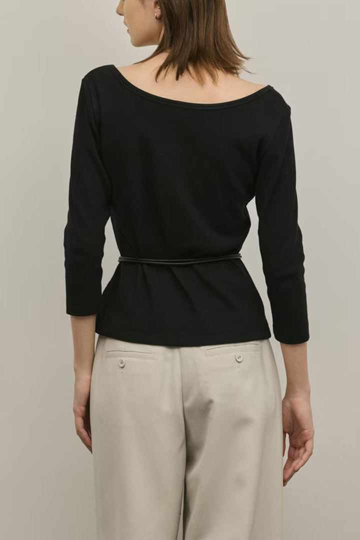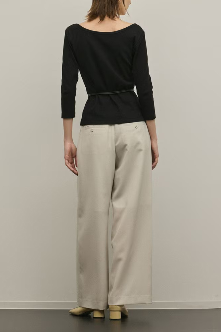 すっきりと開いた首周りとシャレ見えする7分袖で、抜け感とこなれ感をプラスしたのもポイントです。