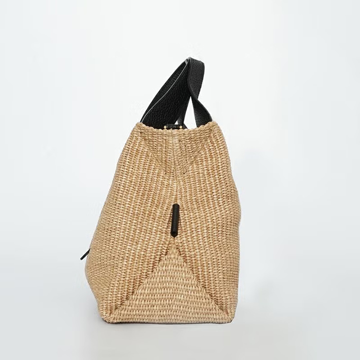 上品な風合いが魅力のラフィア調シートを使用したトートバッグ。