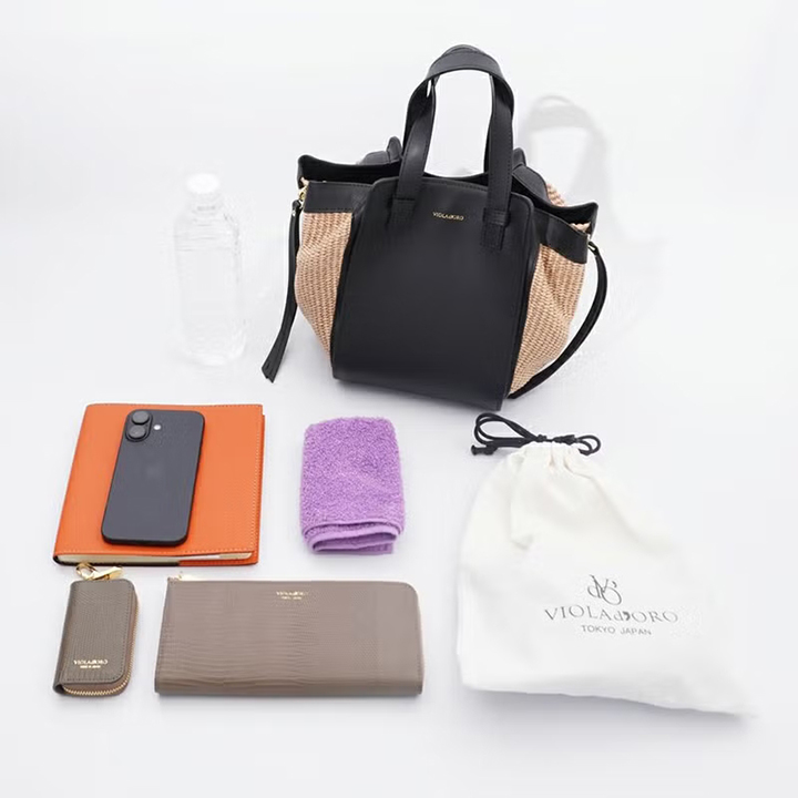 イタリアンラフィアシート レザーコンビ2WAYハンドバッグ