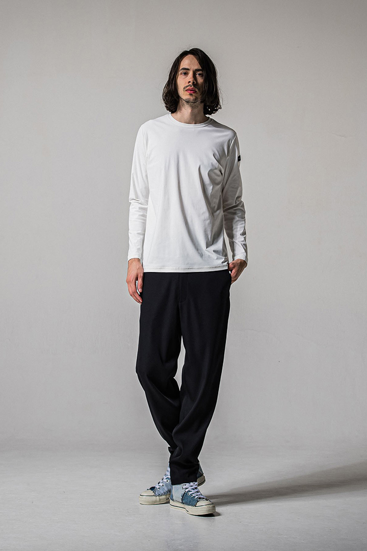 シンプルなのに一枚でもカッコよくスタイリングできるロン Tはありそうでない