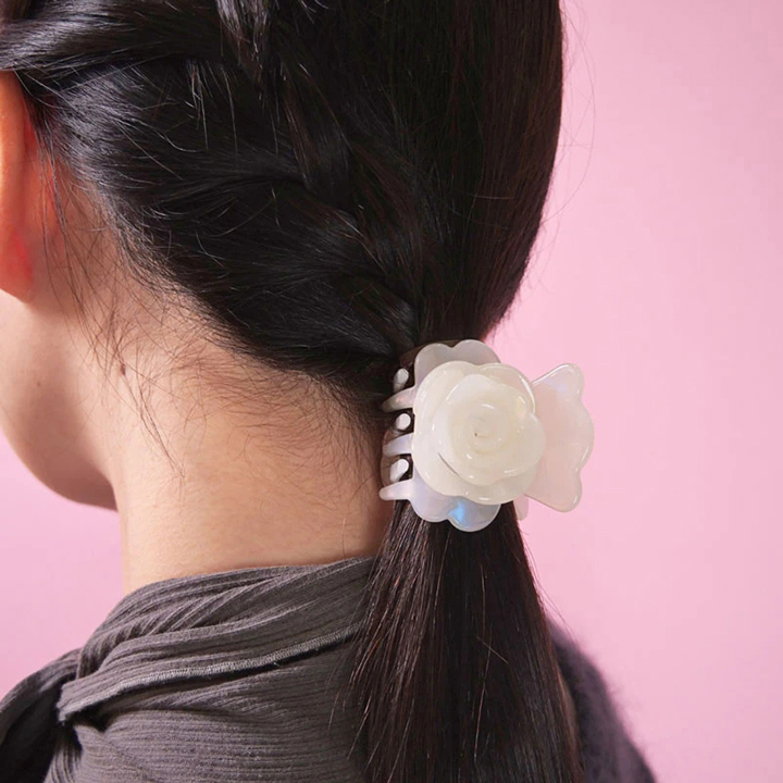 フクシアローズのデザインが存在感を放つヘアクリップ。