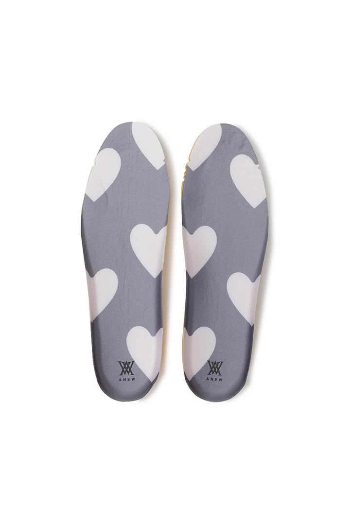 アウトソールにハートモチーフを取り入れ、機能性の中に遊び心をプラスしています。 歩行時にもさりげなく見えるのがポイント。