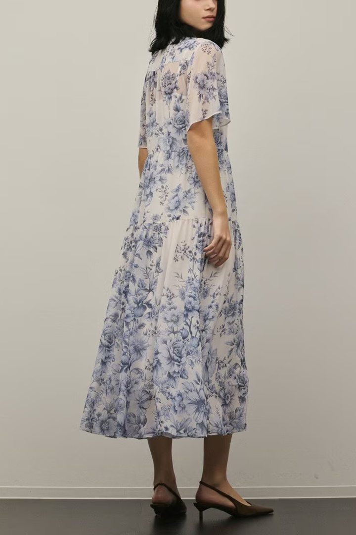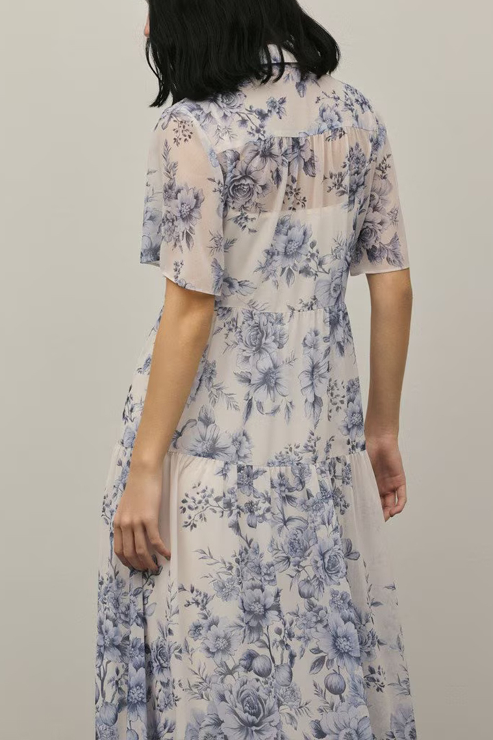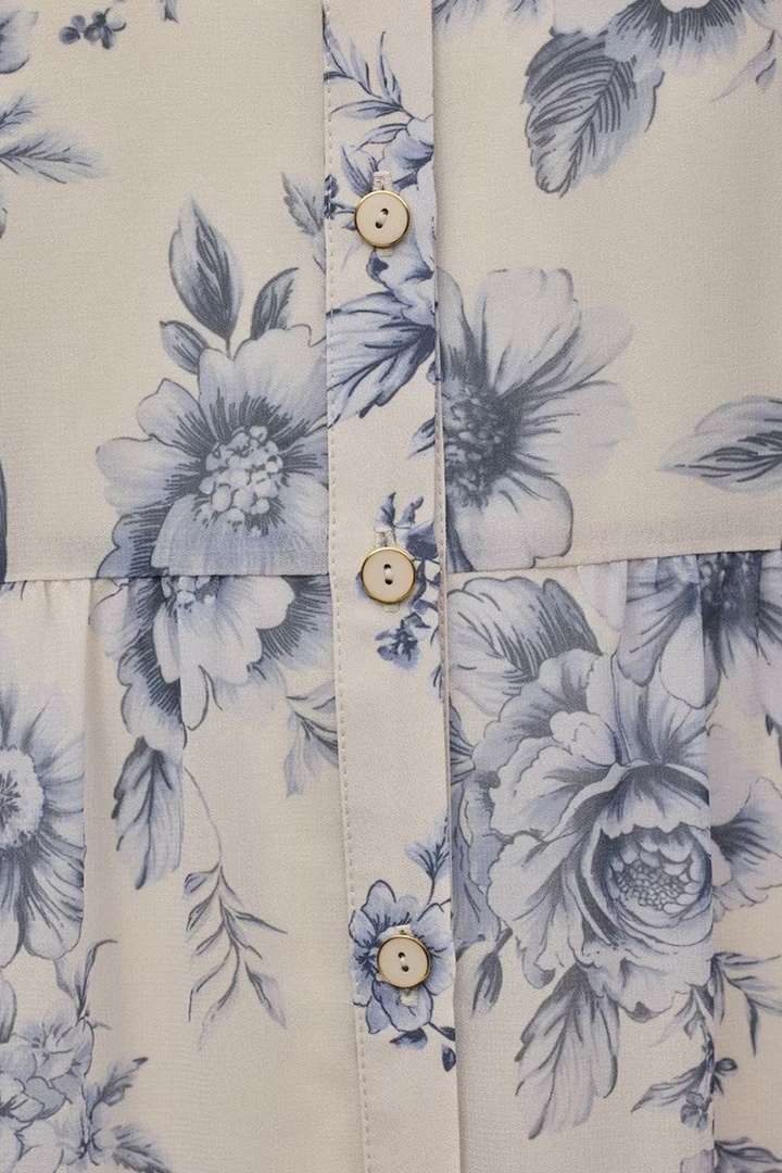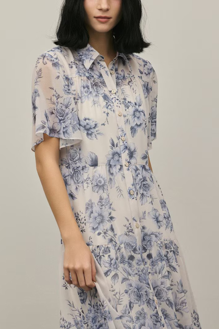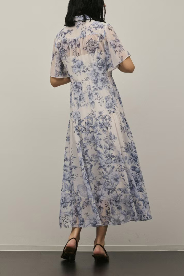 そこに繊細なタッチで描かれた春らしいフラワー柄をのせて、品のあるワンピースに仕上げました。