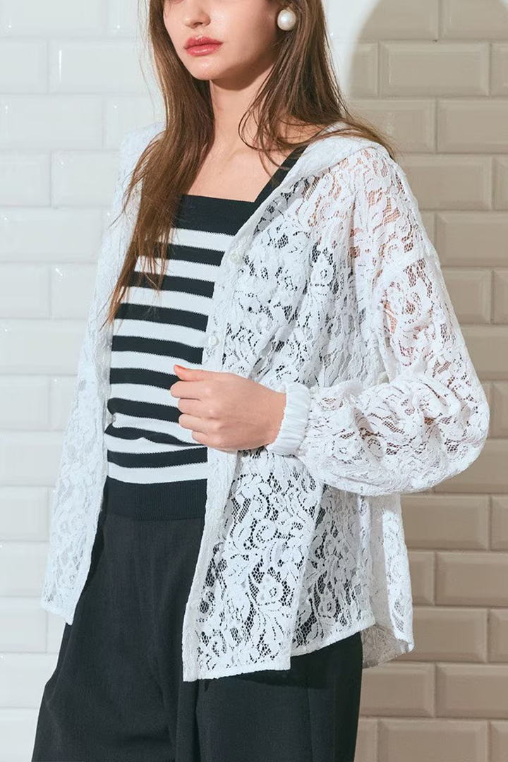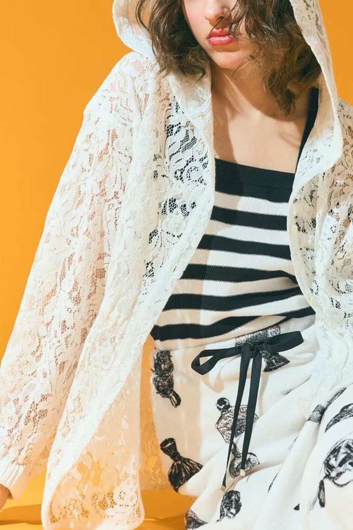 繊細でほどよい張り感のあるコードレース地を軽く一重仕立てにしたウエストドロストデザインのフーディ。