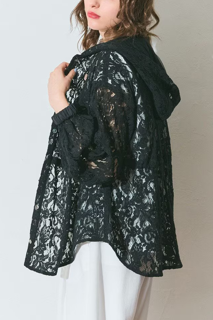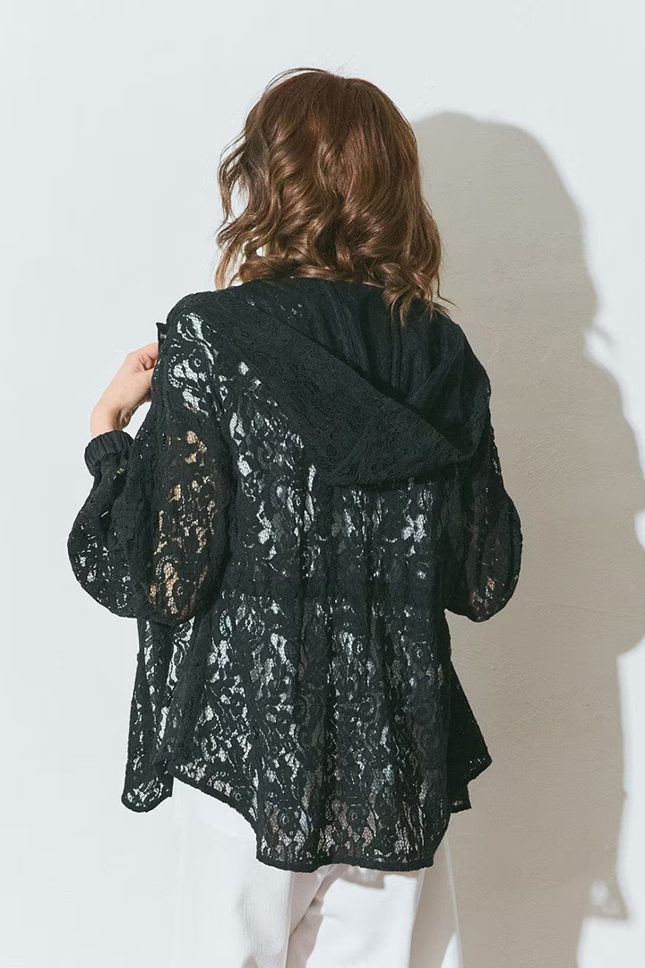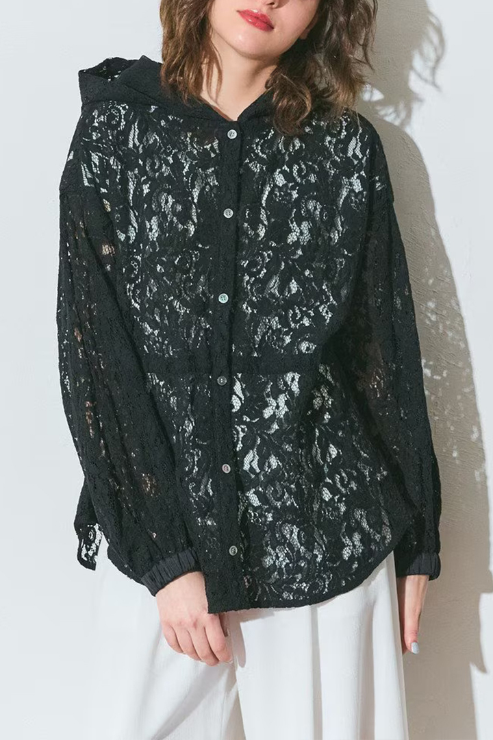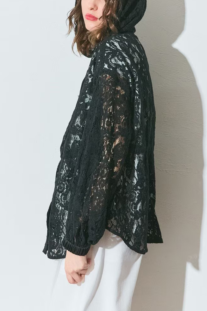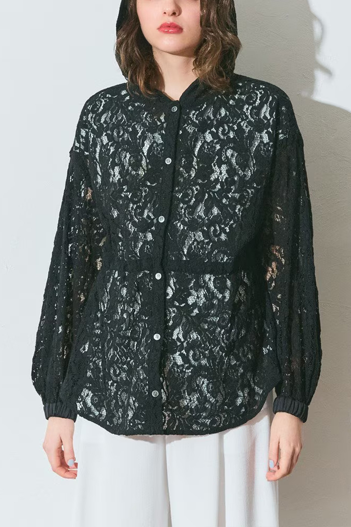 繊細でほどよい張り感のあるコードレース地を軽く一重仕立てにしたウエストドロストデザインのフーディ。